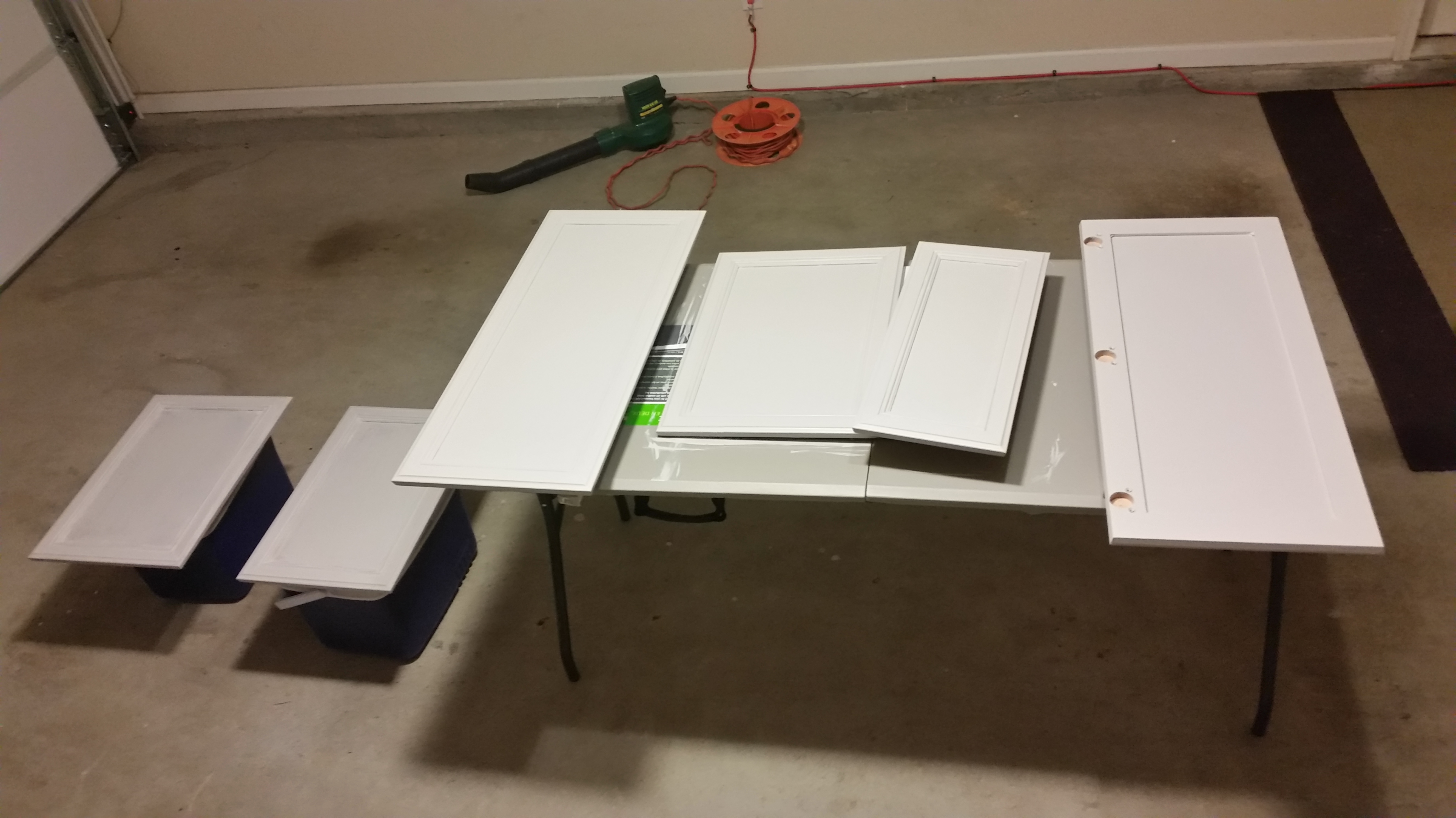 So here’s my update. Im applying the bond coat on the total of 8 cabinet doors tonight, hopefully will finish applying 3 coats before I hit the bed…