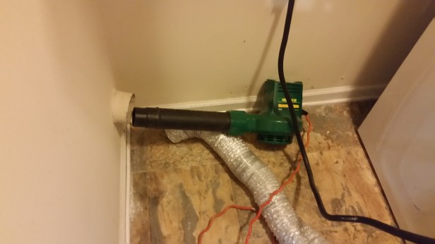 Learned a tip from a repair man who works on appliances and said the easiest way to clean a dryer air duct is to use a leaf blower. If you don’t clean out the dryer air duct it can cause a fire with the lint build up. (Had no clue!) I gave it a try with my electric leaf blower and boom! All that build up shot out and it was snowing lint in my backyard.